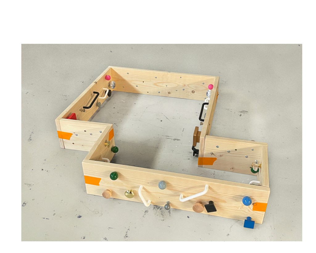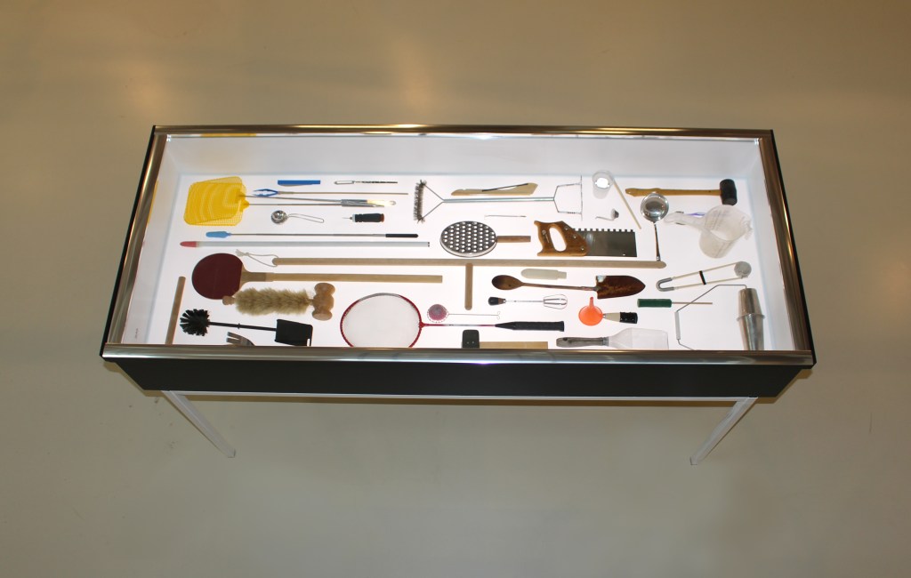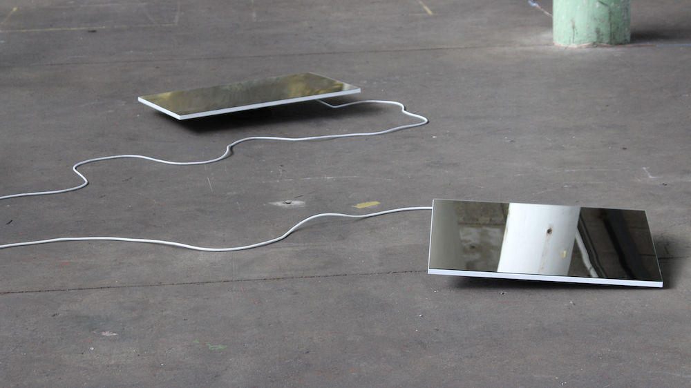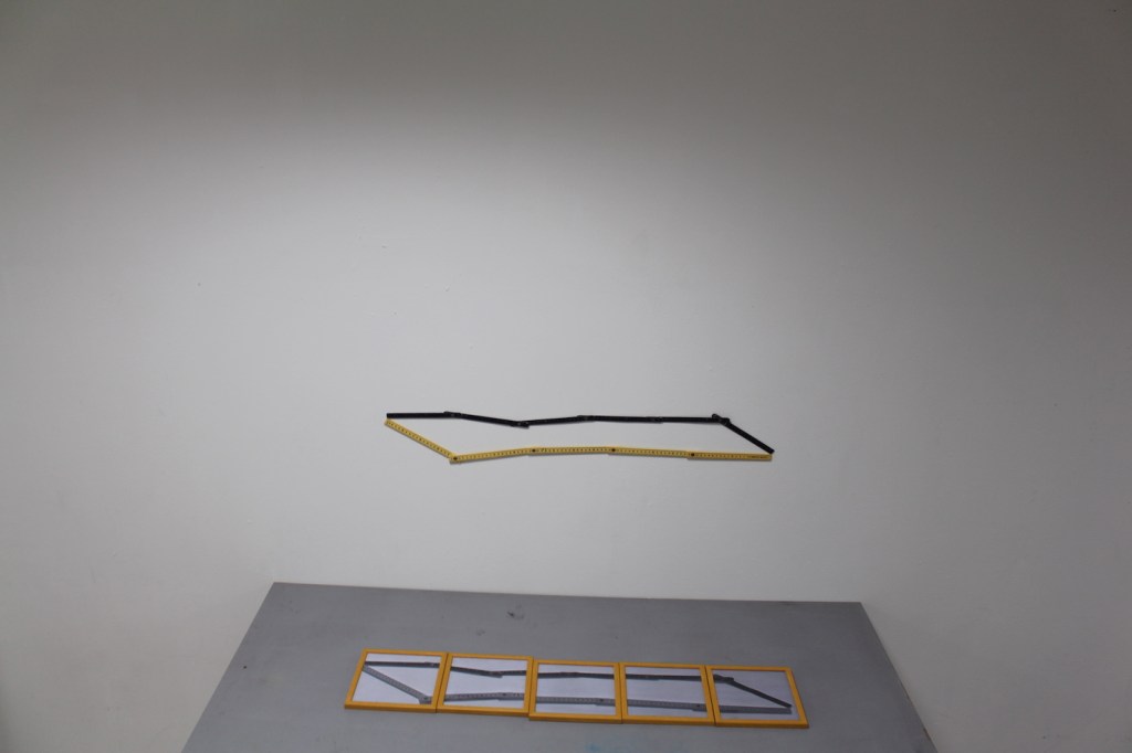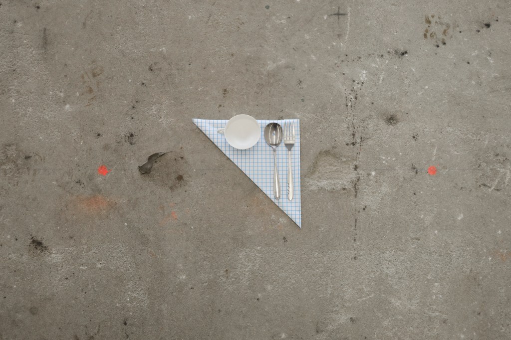 30 handmade concrete tiles form a 6×5 grid on the floor. Agitated by a rotating weight, a brush takes a random walk over the grid, evaluating the surface in terms of roughness and slope. When the brush crosses a line it turns spontaneously, as friction causes one side to slow down. A tank containing an electric pump feeds liquidised clay onto the concrete in a daily cycle.